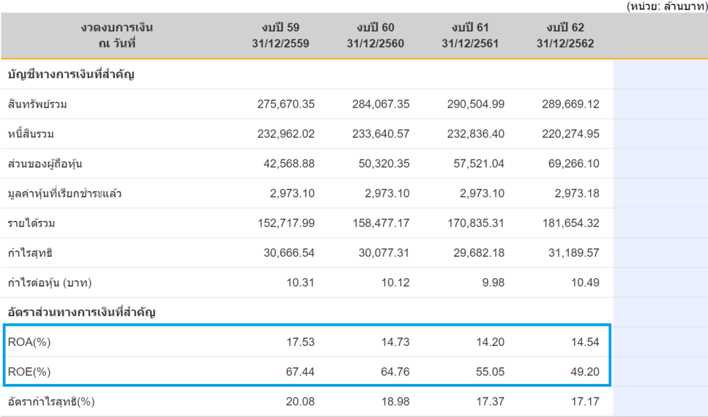 ใครสนใจอ่านเพิ่มเติมสำหรับ ROE หรืออยากทราบว่าทำไมหุ้นนี้ ROE สูงมาก แต่ ROA น้อย สามารถกดอ่านได้เพิ่มเติมจากลิงค์นี้นะคะ
