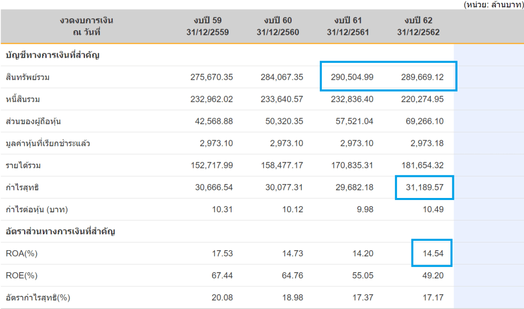 กำไรสุทธิจะคิดกำไร 4 ไตรมาส หรือ 1 ปี ถ้าตามตารางงบงบย่อนี้ ก็เป็นกำไรทั้งปีอยู่แล้วตรงกัน แต่ถ้าเป็น กำไรไตรมาส 1/63 จะต้องคิดย้อนรวมไปอีกให้ครบ 4 ไตรมาส นะ คือ รวมกำไร ไตรมาส 1/63, ไตรมาส 4/62, ไตรมาส 3/62 และไตรมาส 2/62 แบบนี้นะ
