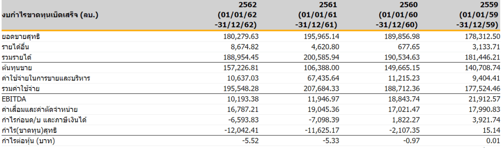 ถ้าเข้าไปดูงบการเงินในส่วนงบกำไรขาดทุน ของปี 62