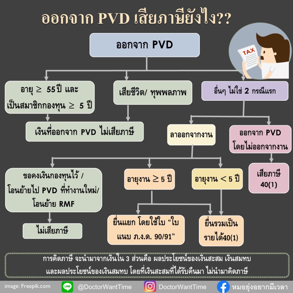ใครออกจากงาน เปลี่ยนงาน และที่บริษัทเดิมมีกองทุนสำรองเลี้ยงชีพ(PVD) มาอ่านกันว่าเงินที่เราได้ออกมาจากกองทุนสำรองเลี้ยงชีพนี้ต้องเสียภาษียังไง หรือเรามีทางเลือกอะไรบ้าง ไปอ่านกันได้เลย…