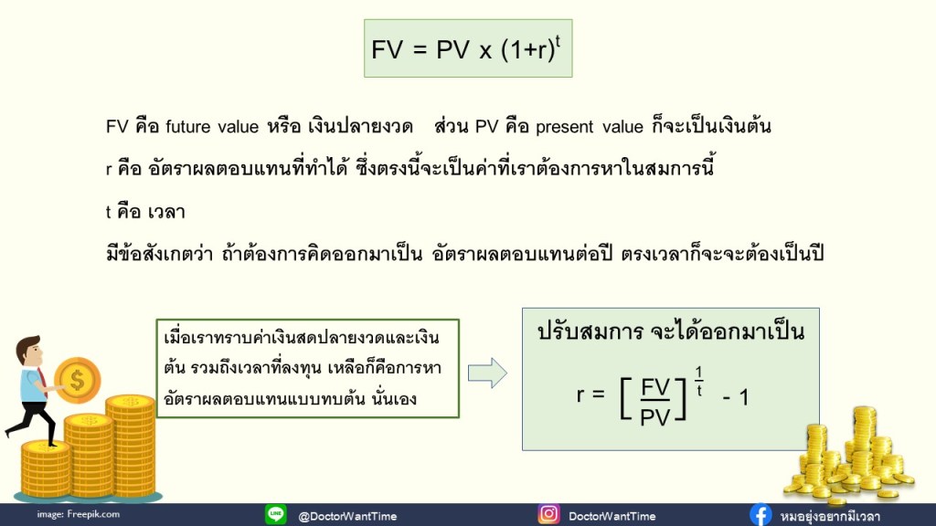 ดังนั้นเมื่อเราแทนค่าสมการ เราจะหาค่า r ได้ = 4.08% ต่อปี แบบทบต้น