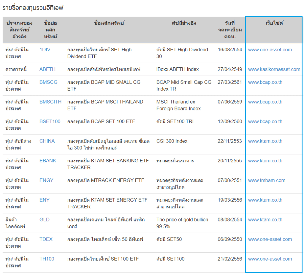 จะหาข้อมูลของกอง ETF ที่มีในบ้านเรา ได้จากไหน