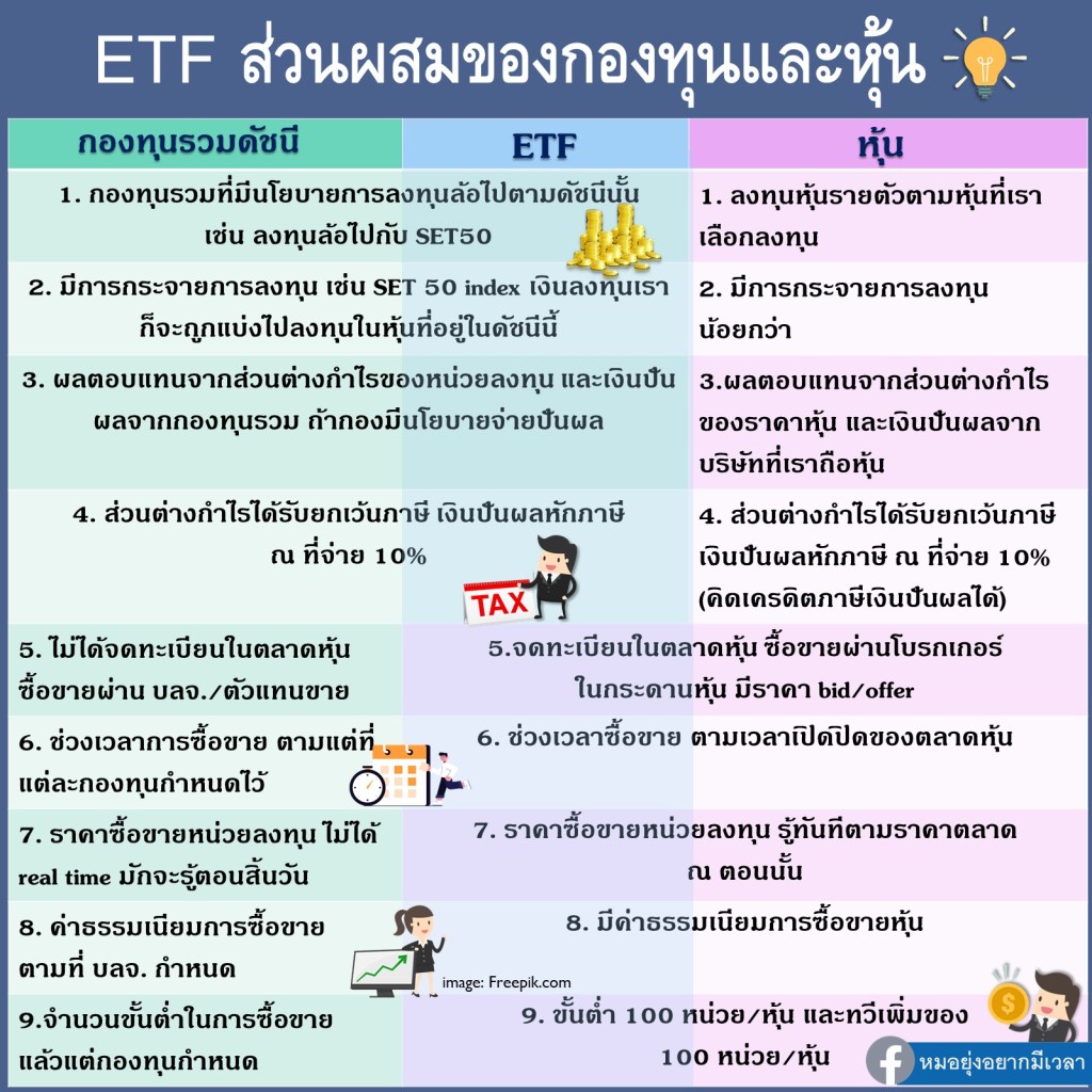 สรุปความเหมือนและต่างของ ETF กับกองทุนรวมดัชนี และหุ้น