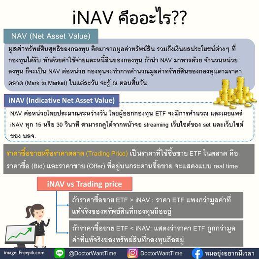 ข้อมูลเพิ่มเติม: NAV คือ NAV (Net Asset Value) หรือ ทรัพย์สินสุทธิของกองทุน คิดมาจากมูลค่าทรัพย์สินของกองทุน รวมถึงเงินผลประโยชน์ต่างๆ ที่กองทุนได้รับ หักด้วยค่าใช้จ่ายและหนี้สินของกองทุน ก็ได้ออกมาเป็นทรัพย์สินสุทธิของกอง และถ้านำ NAV มาหารด้วย จำนวนหน่วยลงทุน ก็จะเป็น NAV ต่อหน่วย ซึ่งกองทุนจะทําการคํานวณมูลค่าทรัพย์สินของกองทุนตามราคาตลาด (Mark to Market) ในแต่ละวัน