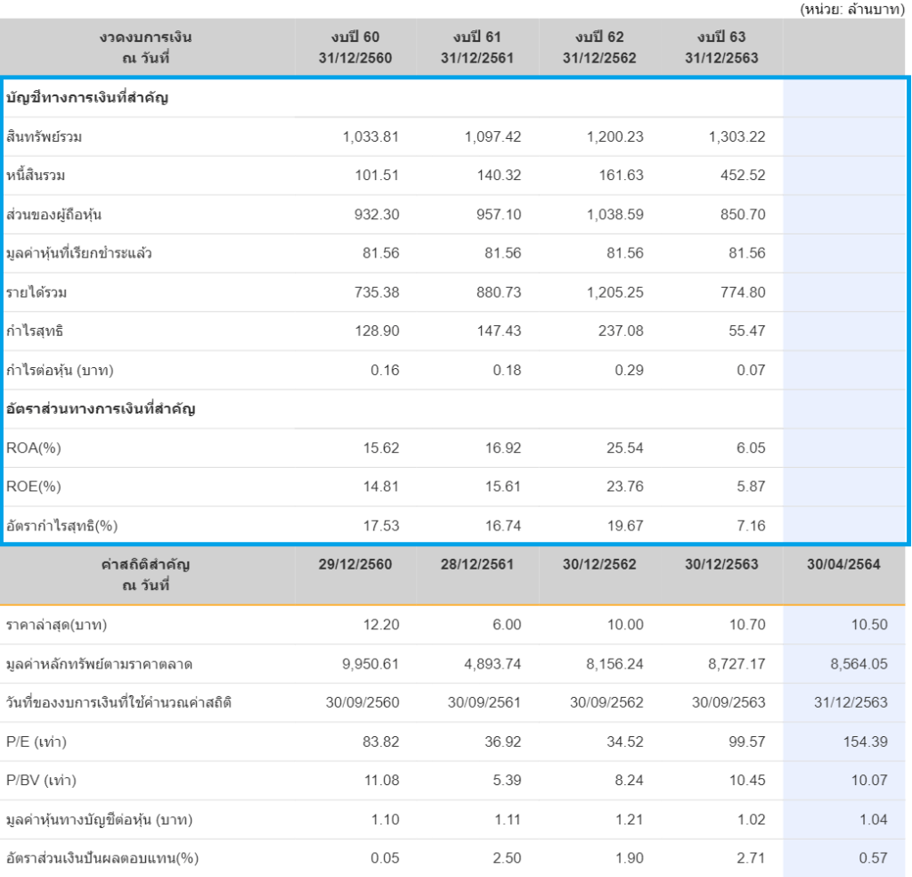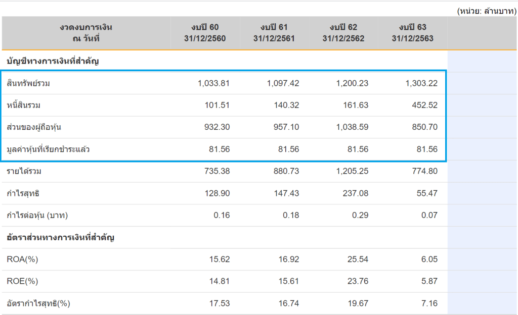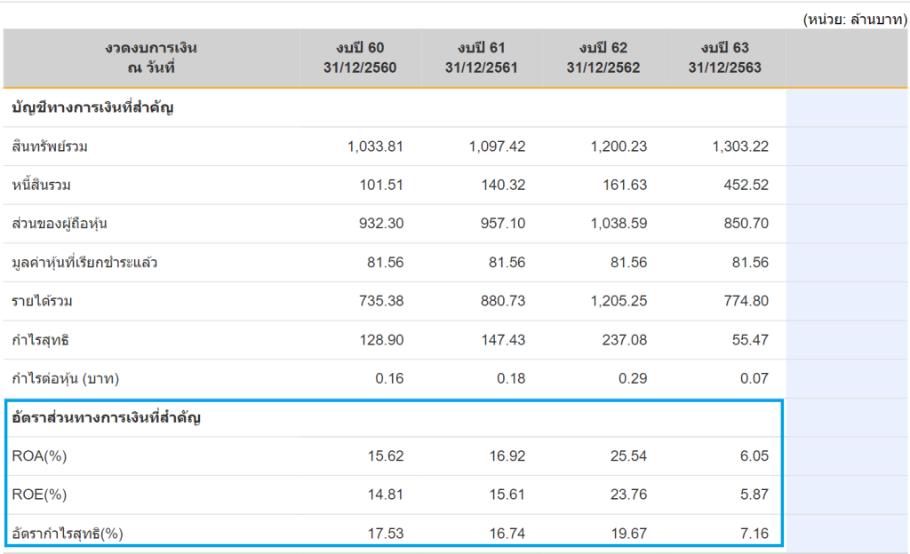 ต่อมาจะมีอีก 3 บรรทัด ในตารางงบย่อในส่วนที่ 1 คือ “อัตราส่วนทางการเงินที่สำคัญ”