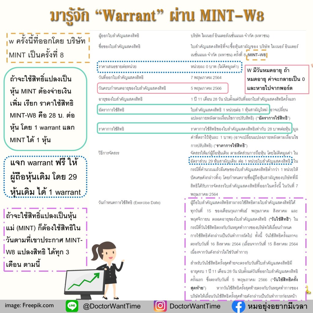 หุ้น MINT จะเป็นหุ้นสามัญ หรือที่เรียกว่าหุ้นแม่ ส่วน warrant คือหุ้นลูก จะเขียนแบบมี W ต่อท้าย และครั้งนี้เป็นการออก warrant ครั้งที่ 8 ของ MINT “MINT-W8”