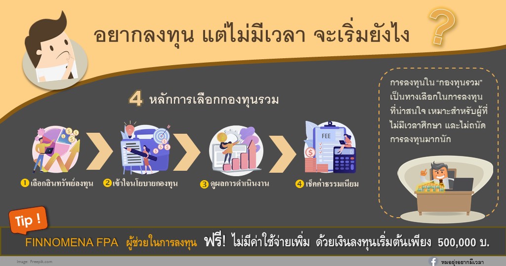 การลงทุนในกองทุนรวมเป็นทางเลือกในการลงทุนที่น่าสนใจ สำหรับคนที่ไม่มีเวลาศึกษา และไม่ถนัดการลงทุน และถ้าต้องการผู้ช่วยคอยเป็นที่ปรึกษาในการลงทุน คัดเลือก จัดพอร์ตกองทุน และช่วยติดตามการลงทุน ลองมารู้จักกับ FINNOMENA Financial Personal Advisor Services เพิ่มเติมได้จากลิงค์นี้นะคะ https://finno.me/fpa-services-3