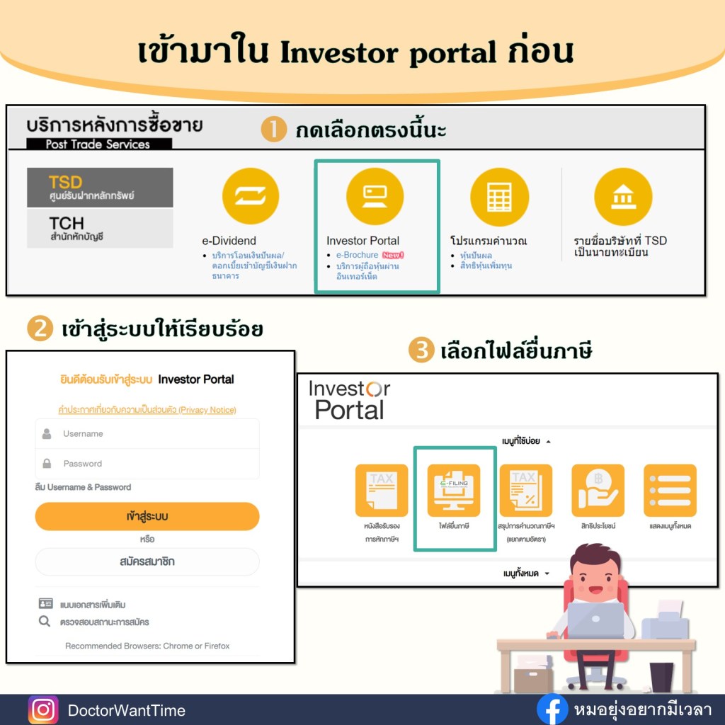 ถ้าใครลงทุนหุ้นแล้วยังไม่ได้สมัคร TSD investor portal แนะนำให้สมัครนะ มันจะไม่ได้มาอัตโนมัติเมื่อมีปัญชีหุ้นนะ ต้องเข้ามาสมัครเอง การสมัครมีขั้นตอนยังไงอ่านเพิ่มเติมได้จากโพสนี้นะ https://doctorwanttime.com/2021/09/24/สมัคร-investor-portal-ทำให้ชีวิตง่ายข/