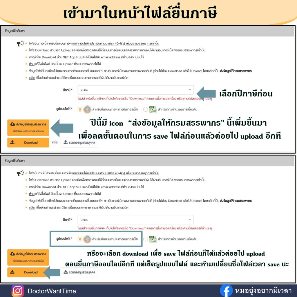 หรือจะเลือก download เพื่อ save ไฟล์ก่อนก็ได้แล้วค่อยไป upload ตอนยื่นภาษีออนไลน์อีกทีแบบปีก่อนๆ ก็ได้ แต่เช็ครูปแบบไฟล์ “สำหรับยื่นแบบภาษีฯ ทางอินเตอร์เน็ต” และห้ามเปลี่ยนชื่อไฟล์เวลา save นะ