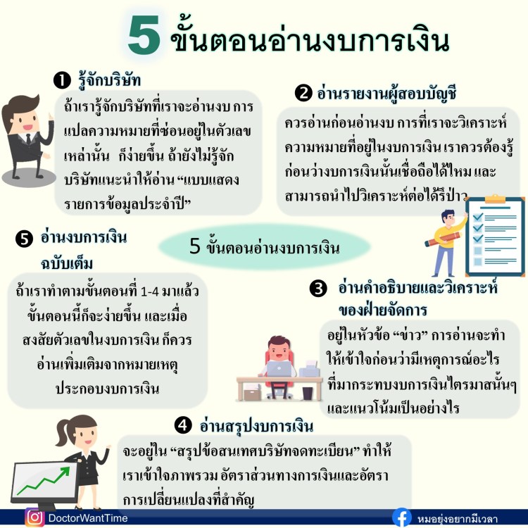 ถ้าใครสนใจเพิ่มเติมว่าแต่ละงบเป็นยังไง อ่านยังไง พร้อมตัวอย่างหุ้นจริงสามารถดูได้จากคลิปที่ทางเพจทำไว้ในช่อง YouTube Dr. Tui ได้นะคะ https://m.youtube.com/channel/UCMkbg3toEzhpkQa186rDNPg?sub_confirmation=1