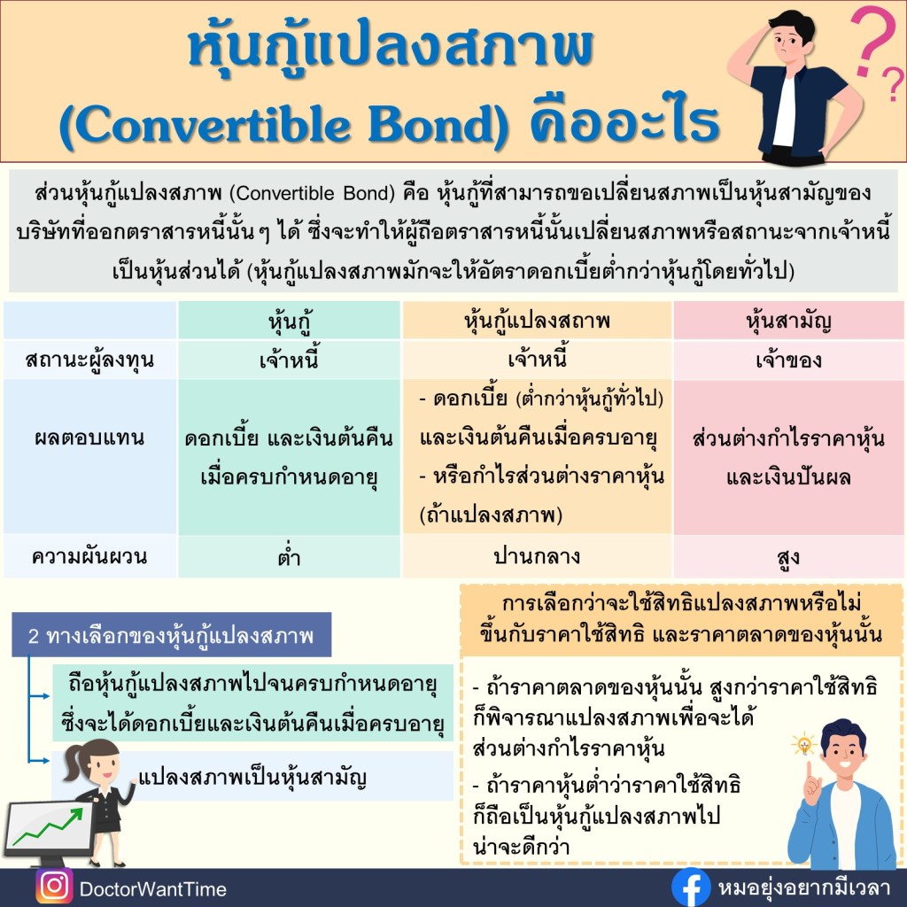 หุ้นกู้เป็นตราสารหนี้อย่างหนึ่งที่สามารถแปลงสิทธิไปเป็นหุ้นสามัญได้ วันนี้จะเล่าให้ฟังกันแบบเข้าใจง่ายๆ ว่า หุ้นกู้แปลงสภาพคืออะไร มีข้อเด่นยังไง และถ้าเราลงทุนจะเลือกแปลงสภาพหรือไม่ต้องดูยังไง มาอ่านกัน…