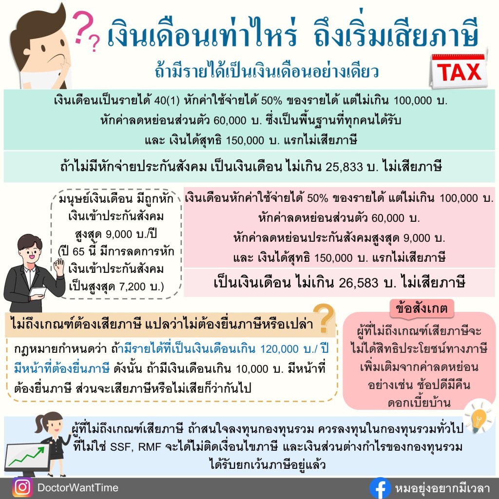 เป็นเงินเดือน ไม่เกิน 26,583 บ. ไม่เสียภาษี