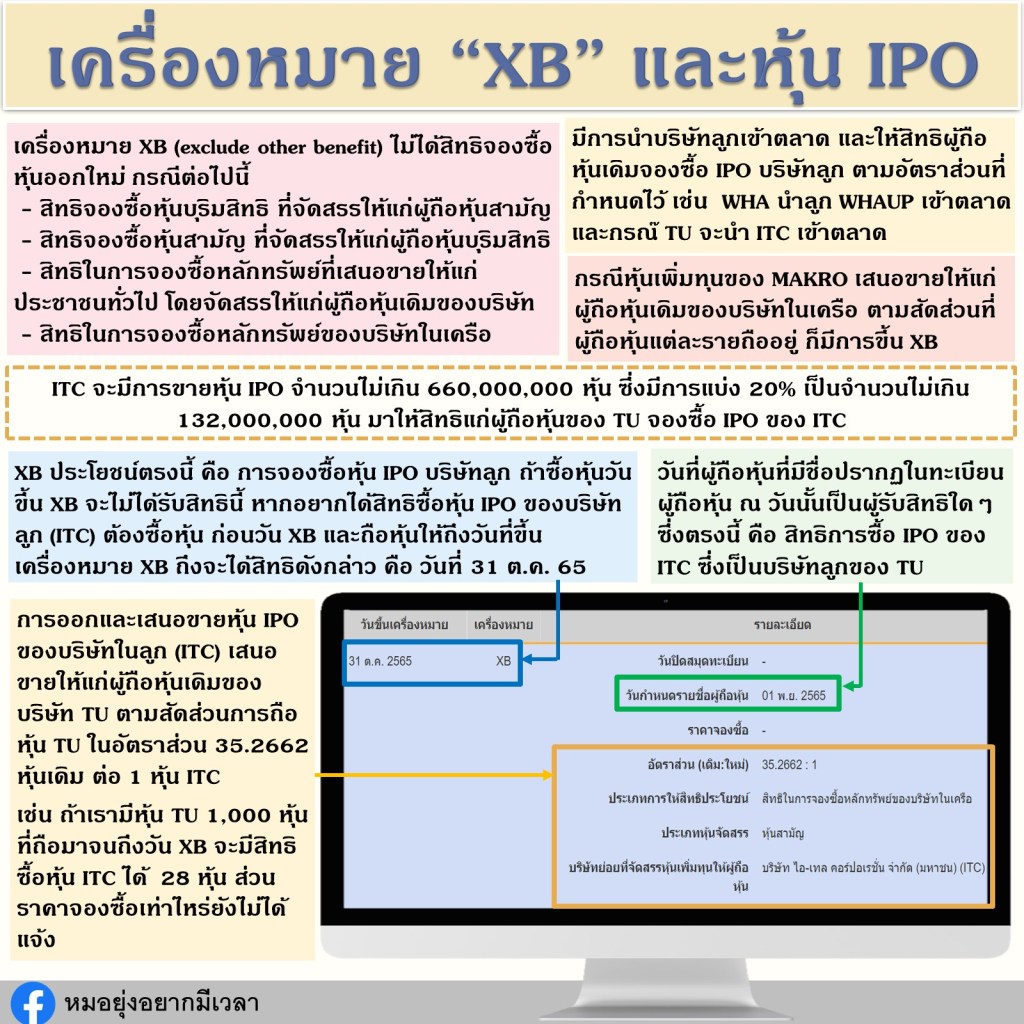ใครสนใจในการซื้อหุ้น ITC หรือได้สิทธิจองซื้อเนื่องจากเป็นผู้ถือหุ้นเดิมของ TU ควรศึกษาข้อมูลรายละเอียดต่าง ๆ ก่อนการตัดสินใจนะคะ
