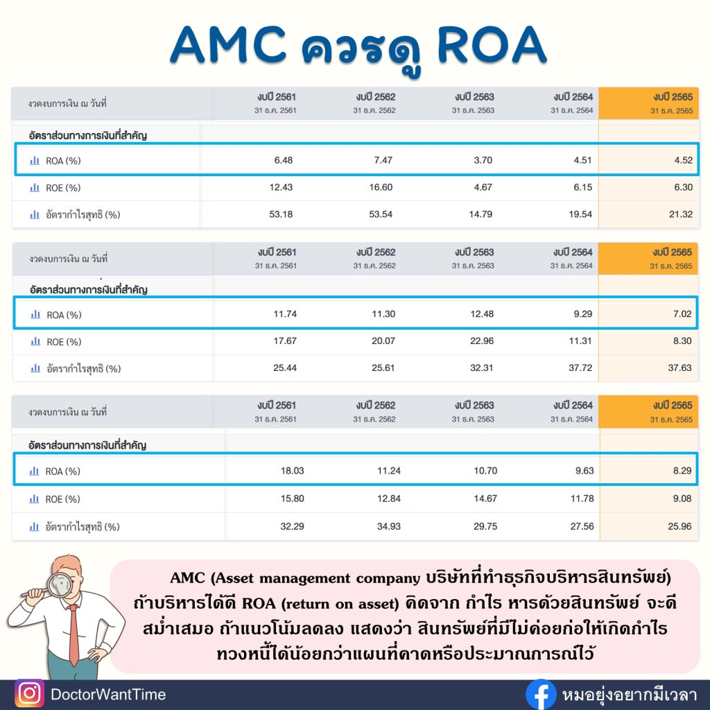 บริษัทบริหารสินทรัพย์ (AMC; Asset management company) ROA ที่ดี สม่ำเสมอ เป็นอัตราส่วนที่ควรสนใจ