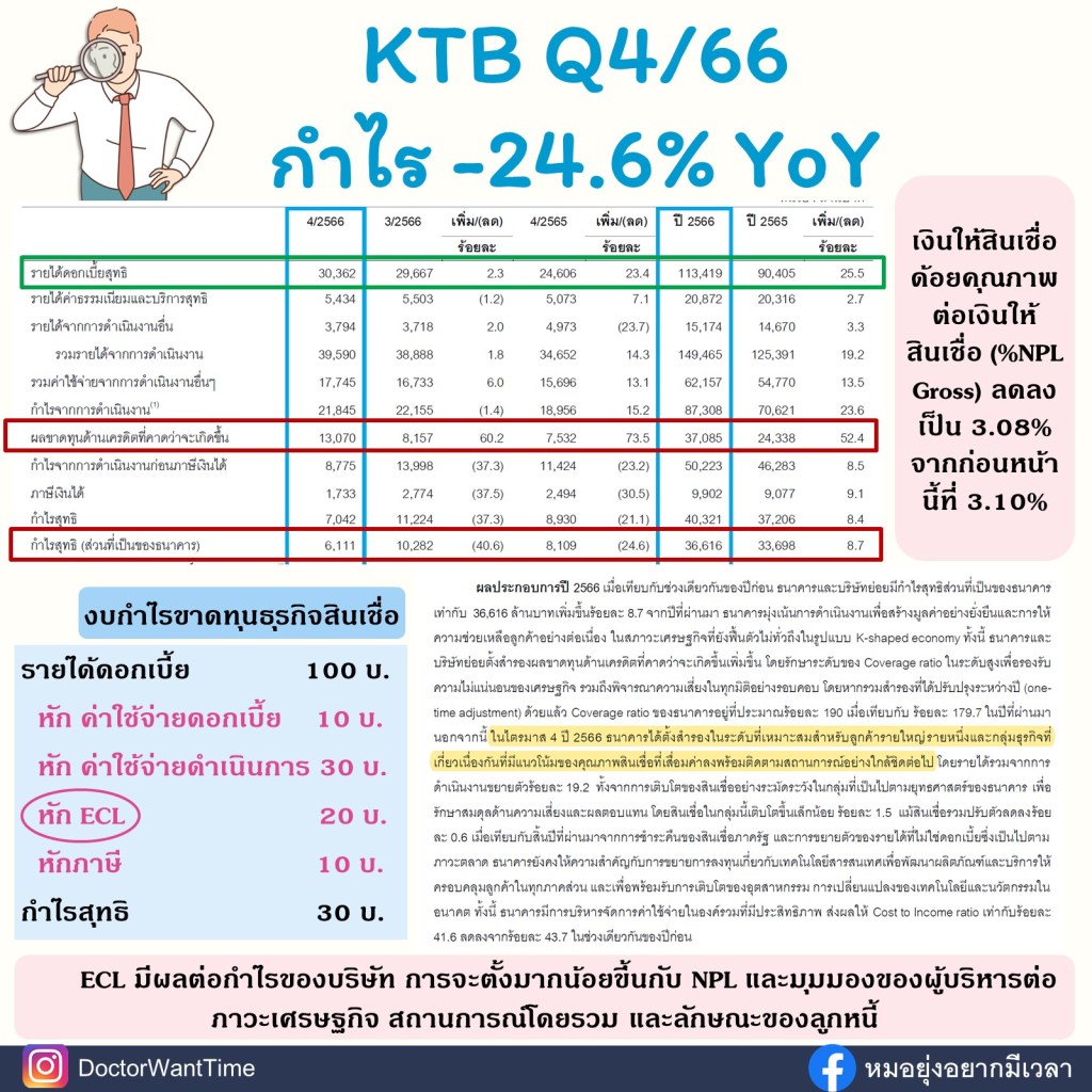 KTB กำไรเติบโตมาตลอดในปี 66 พอประกาศงบ Q4/66 กำไรลดลง -24%YoY เกิดอะไรขึ้น มาลองดูกัน