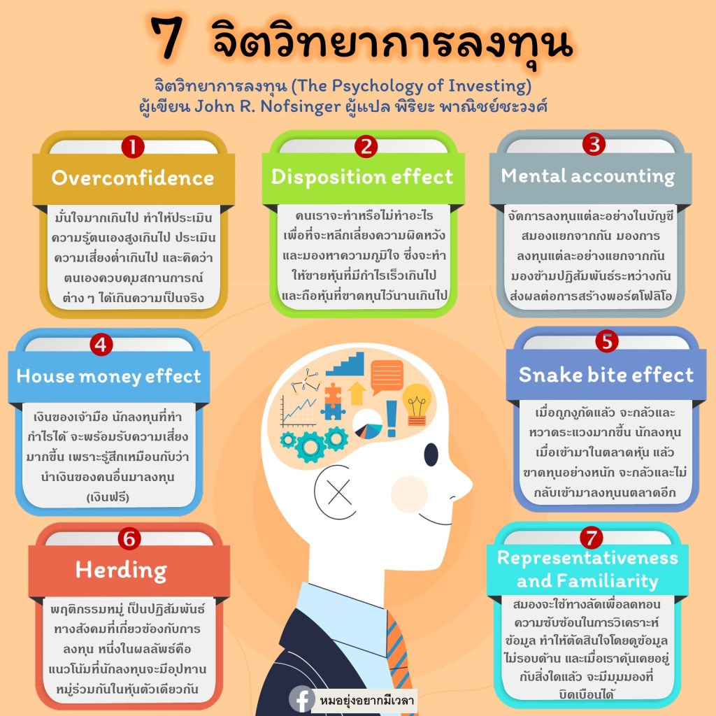 จิตวิทยาการลงทุน (The Psychology of Investing) ผู้เขียน John R. Nofsinger ผู้แปล พิริยะ พาณิชย์ชะวงศ์ เป็นหนังสือที่เล่าถึงเรื่องนี้ได้ดี จึงได้นำเนื้อหาบางส่วนมาจากหนังสือเล่มนี้ และจิตวิทยาการลงทุนที่นักลงทุนมักพลาดมาเล่าให้ฟัง