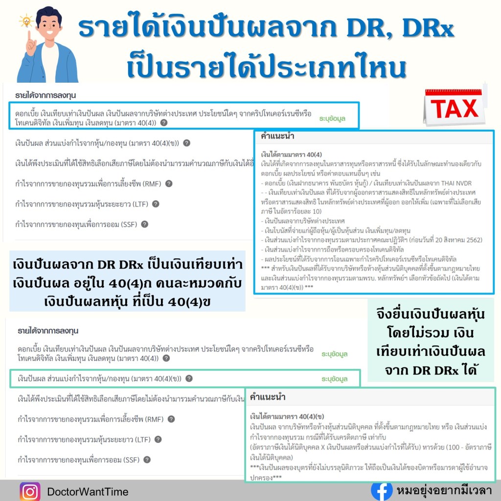 รายได้เงินปันผลจาก DR, DRx จะเป็นรายได้ประเภทไหน เวลายื่นเงินปันผลหุ้นต้องรวมรายได้นี้ไหม