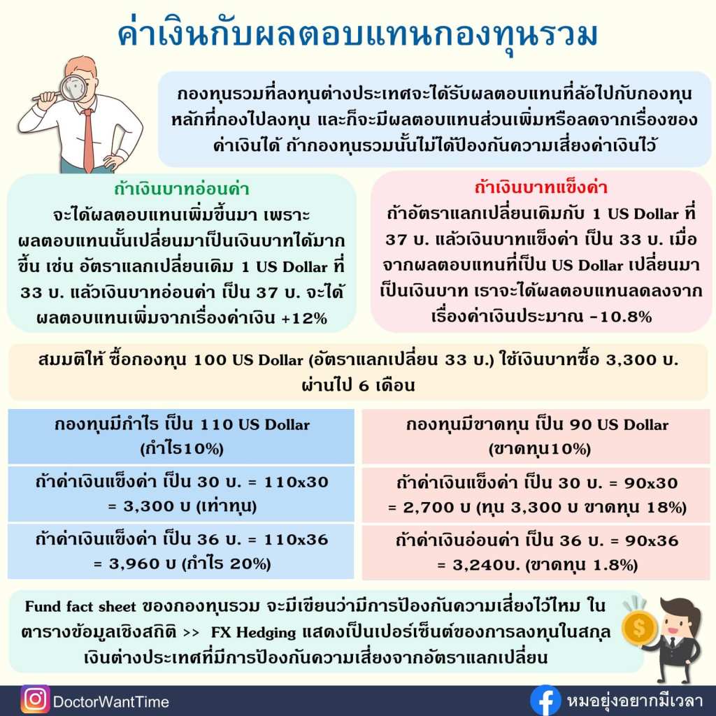 ถ้าเงินบาทอ่อนค่า เราจะได้ผลตอบแทนเพิ่มขึ้นมา เพราะผลตอบแทนนั้นเปลี่ยนมาเป็นเงินบาทได้มากขึ้น