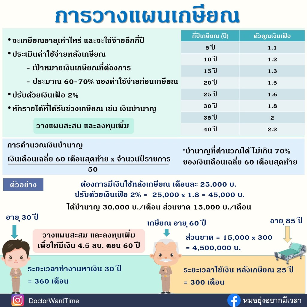 – ตอนนี้อายุเท่าไหร่ จะเกษียณอายุเท่าไหร่ และจะใช้จ่ายอีกกี่ปี