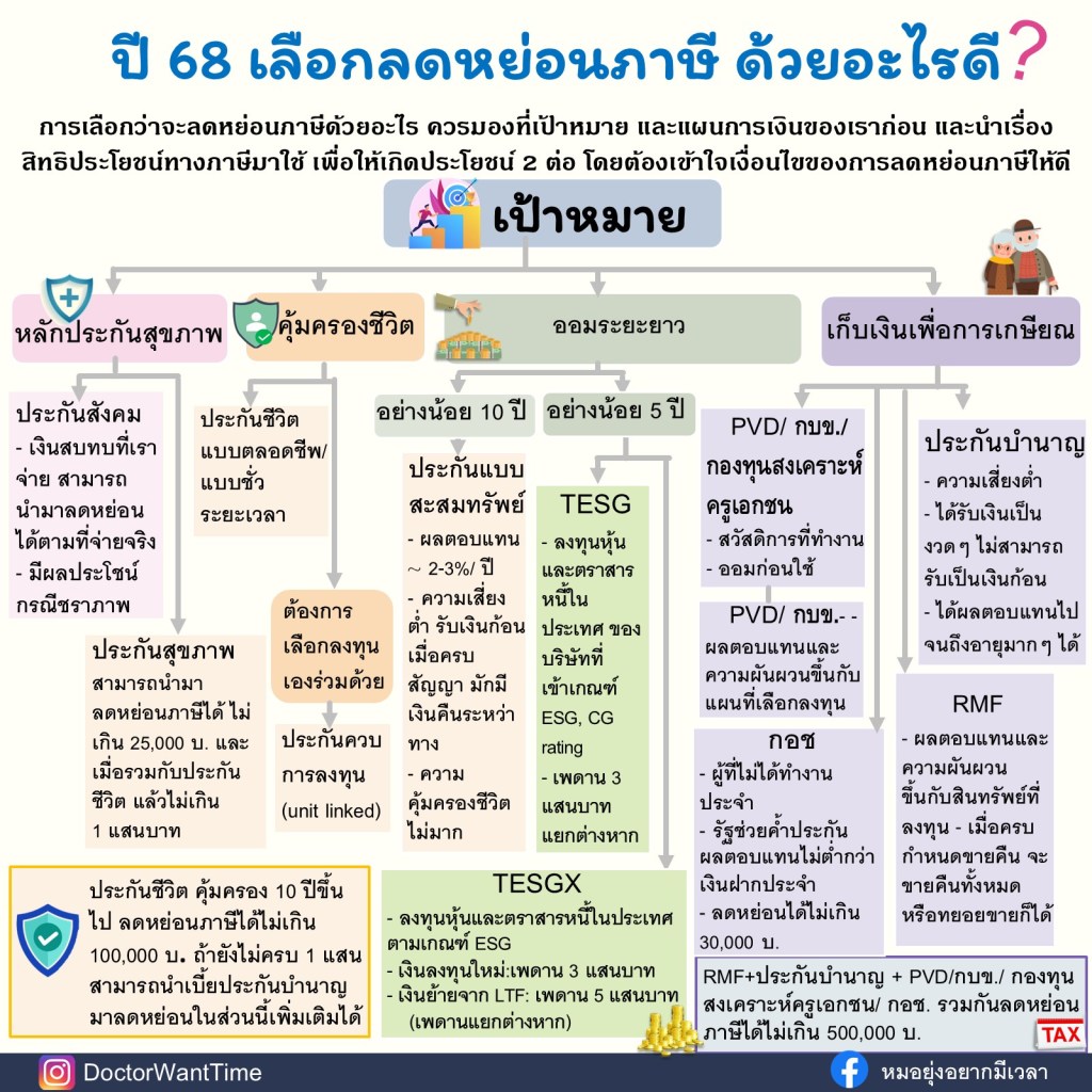 – TESG ลดหย่อนได้ไม่เกิน 30% ของรายได้และไม่เกิน 300,000 บ. เพดานนี้แยกต่างหาก ถืออย่างน้อย 5 ปี ในการลดหย่อนภาษีในปี 67-69 TESG ลงทุนในหุ้น ตราสารหนี้ในประเทศ ตามเกณฑ์ ESG, CG rating อย่างน้อย 3 ดาวขึ้นไป