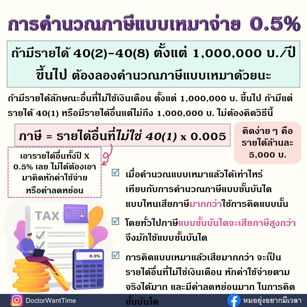 ถ้ามีรายได้อื่นที่ไม่ใช่เงินเดือน เกิน 1,000,000 บาท/ปี → ลองคำนวณแบบเหมาดู