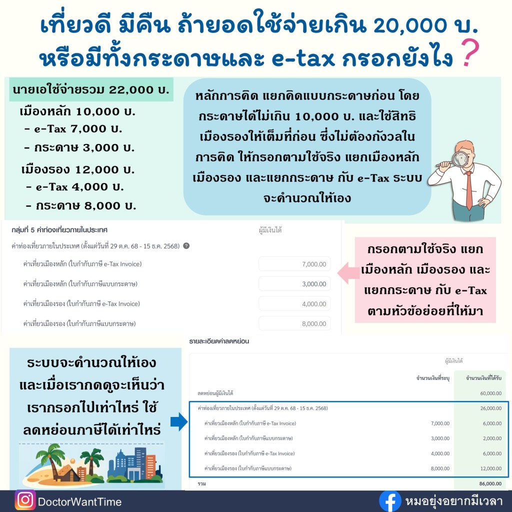 เที่ยวดี มีคืน ถ้ายอดใช้จ่ายเกิน 20,000 บ. หรือมีทั้งกระดาษและ e-tax กรอกยังไง ในแบบยื่นภาษี??