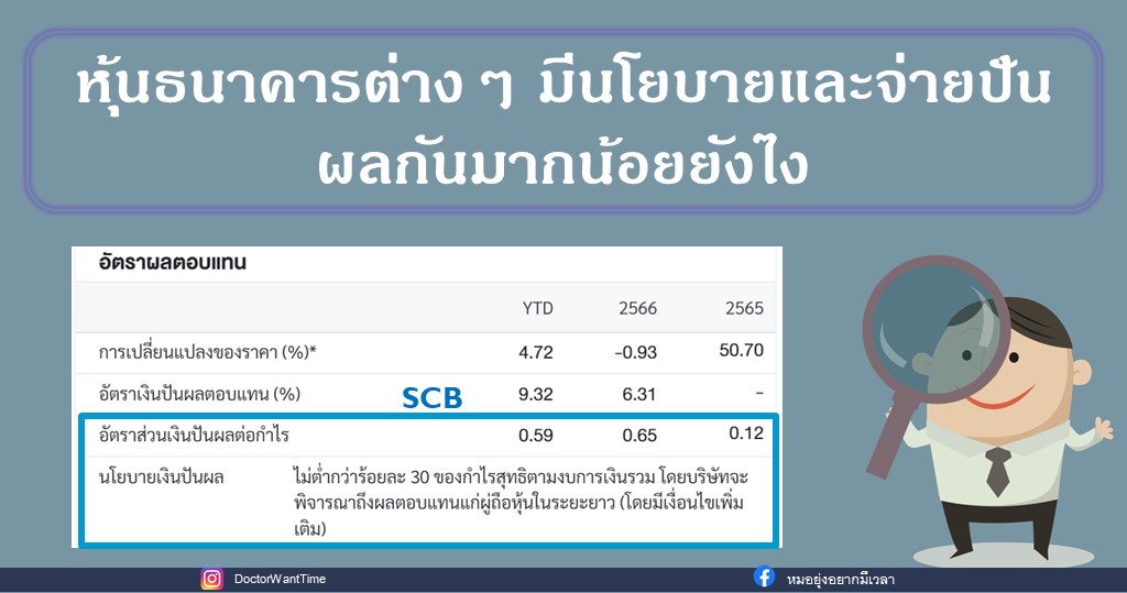 เมื่อวันที่ 20 ก.พ. 67 SCB ประกาศจ่ายปันผล รอบปี 66 ที่อ่านเพิ่มเติม “หุ้นธนาคารต่างๆ มีนโยบายและจ่ายปันผลกันมากน้อยยังไง”