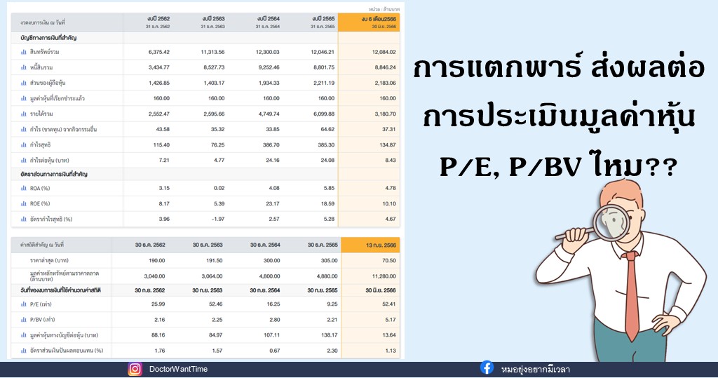 การแตกพาร์ ส่งผลต่อการประเมินมูลค่าหุ้น P/E, P/BV ไหม