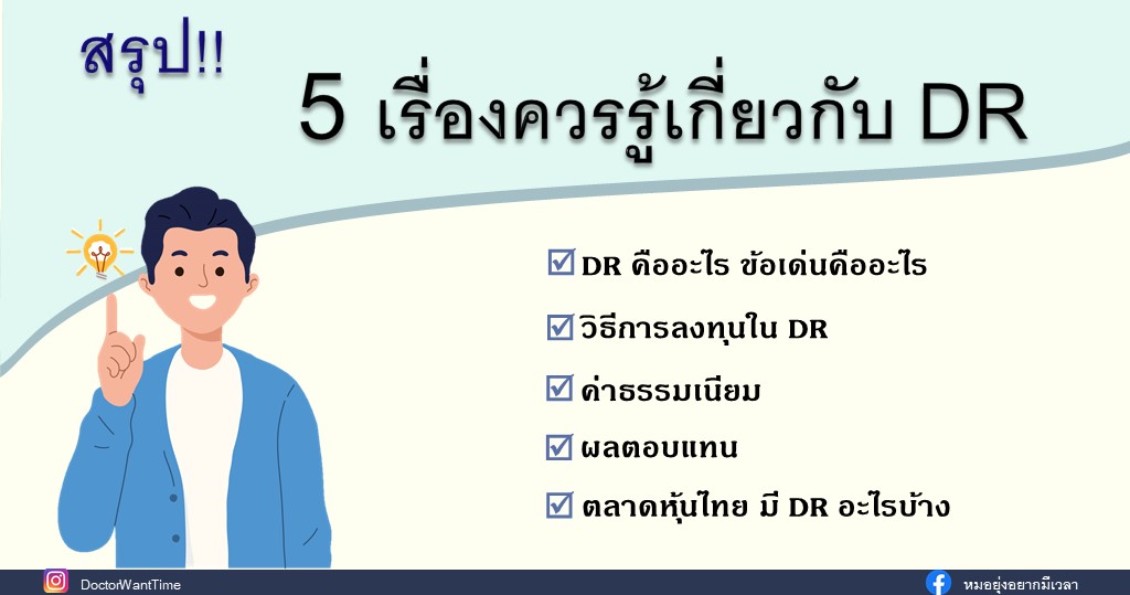 ใครสนใจลงทุน DR โพสนี้สรุปเรื่องต่างๆ ที่ควรรู้เกี่ยวกัอ่านเพิ่มเติม “สรุป 5 เรื่องควรรู้เกี่ยวกับ DR”