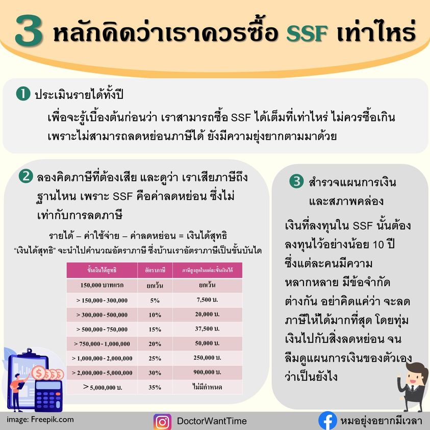การลงทุนใน SSF เป็นการลงทุนในกองทุนรวมลักษณะหนึ่งที่ได้อ่านเพิ่มเติม “3 หลักคิดว่าเราควรซื้อ SSF เท่าไหร่”